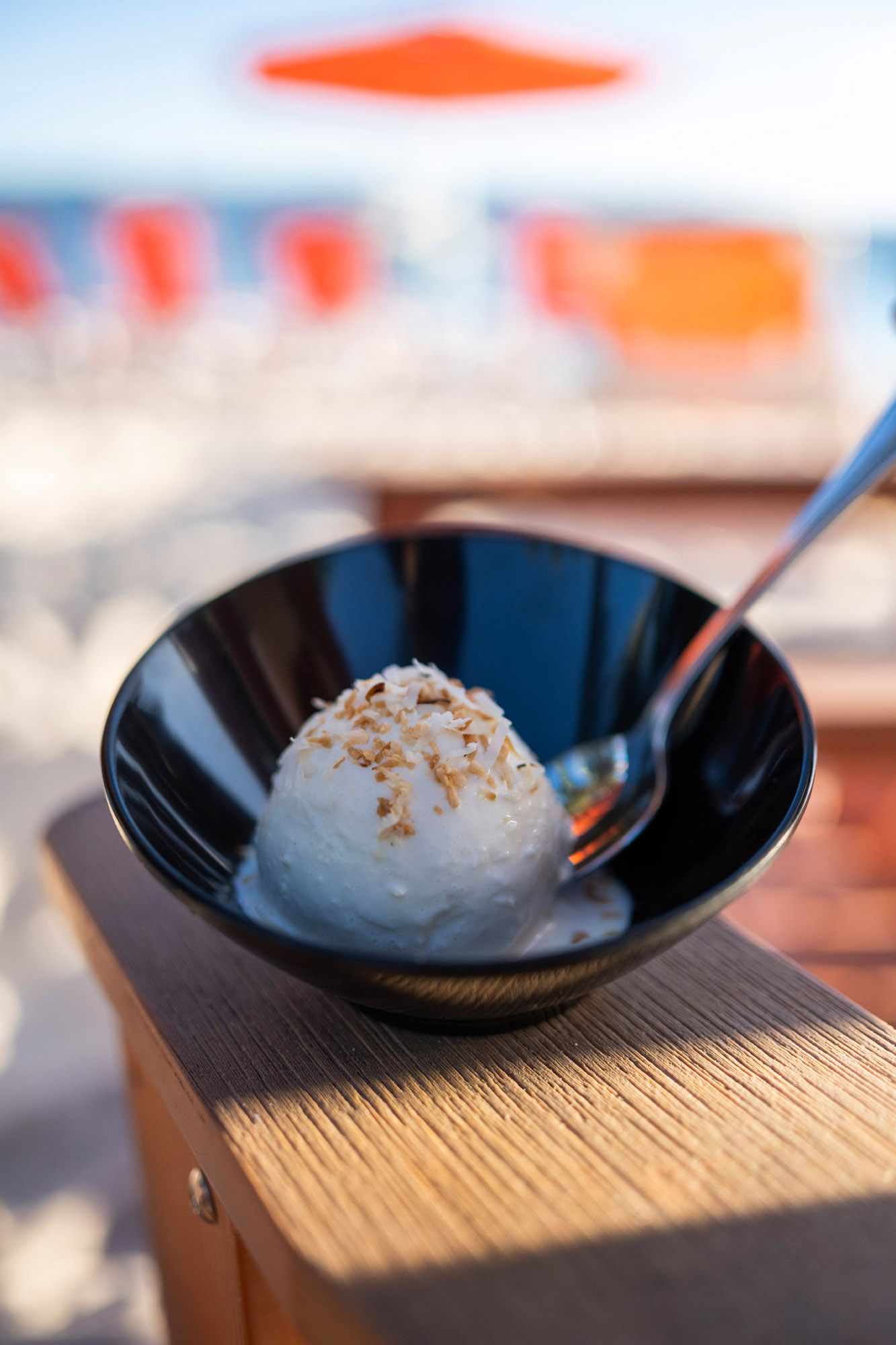 Filled with spicy Hamachi, avocados and bacon. Rolled in coconut tempura crunchies